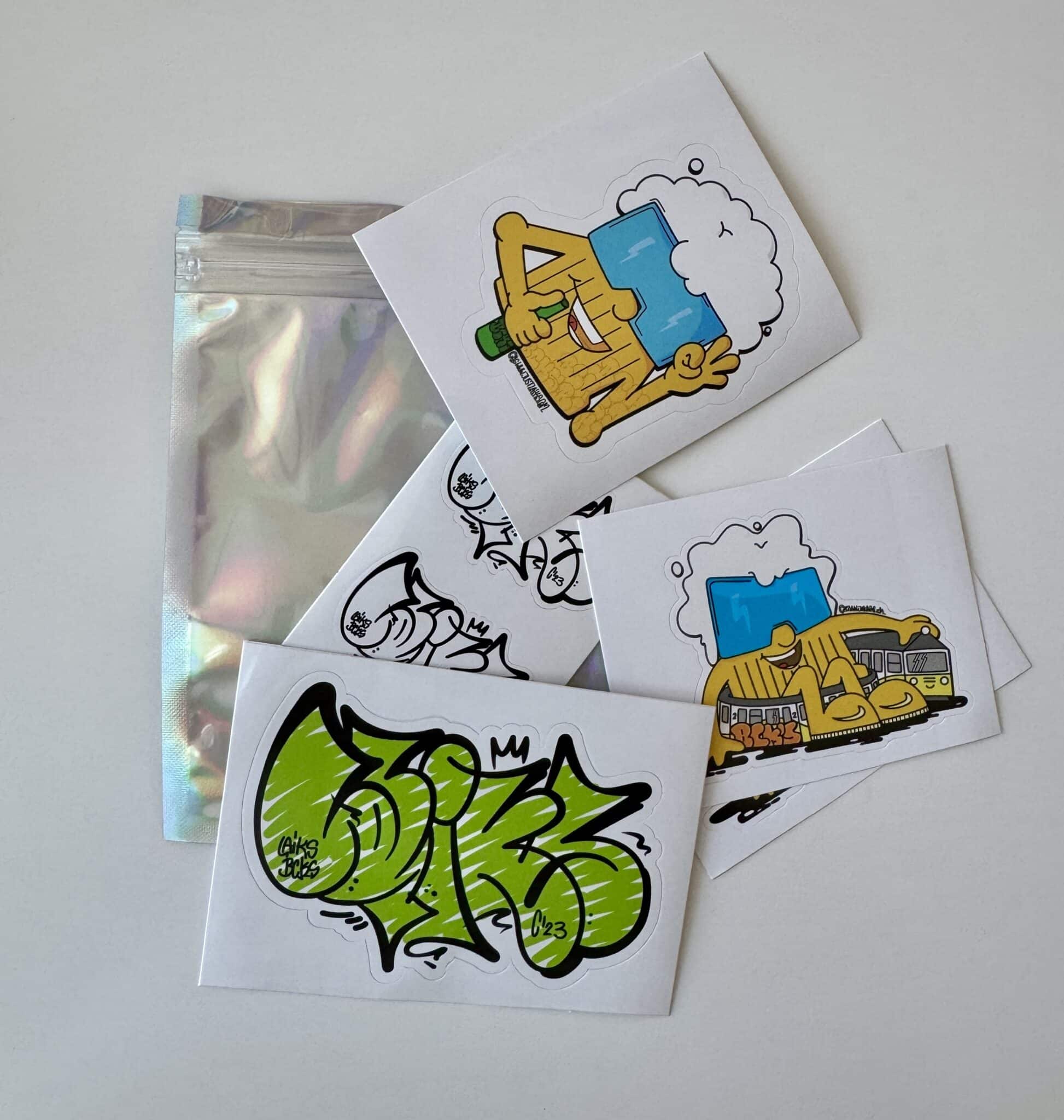Zestaw naklejek od Laiks, Trowupy i ikoniczne kufelki od artysty.